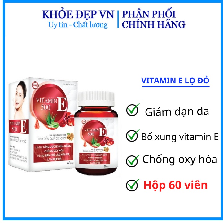 Giới thiệu Viên uống trắng đẹp da collagen Vitamin E đỏ 500 đẹp da giảm lão hóa ngừa nám tàn nhang hộp 60 viên