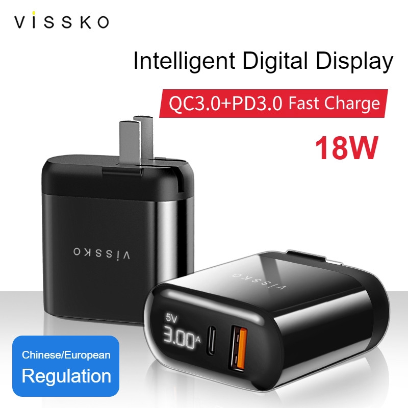 Giới thiệu Vissko PD3.0+QC3.0 Fast Charger 18W Output Intelligent Digital Display Charger