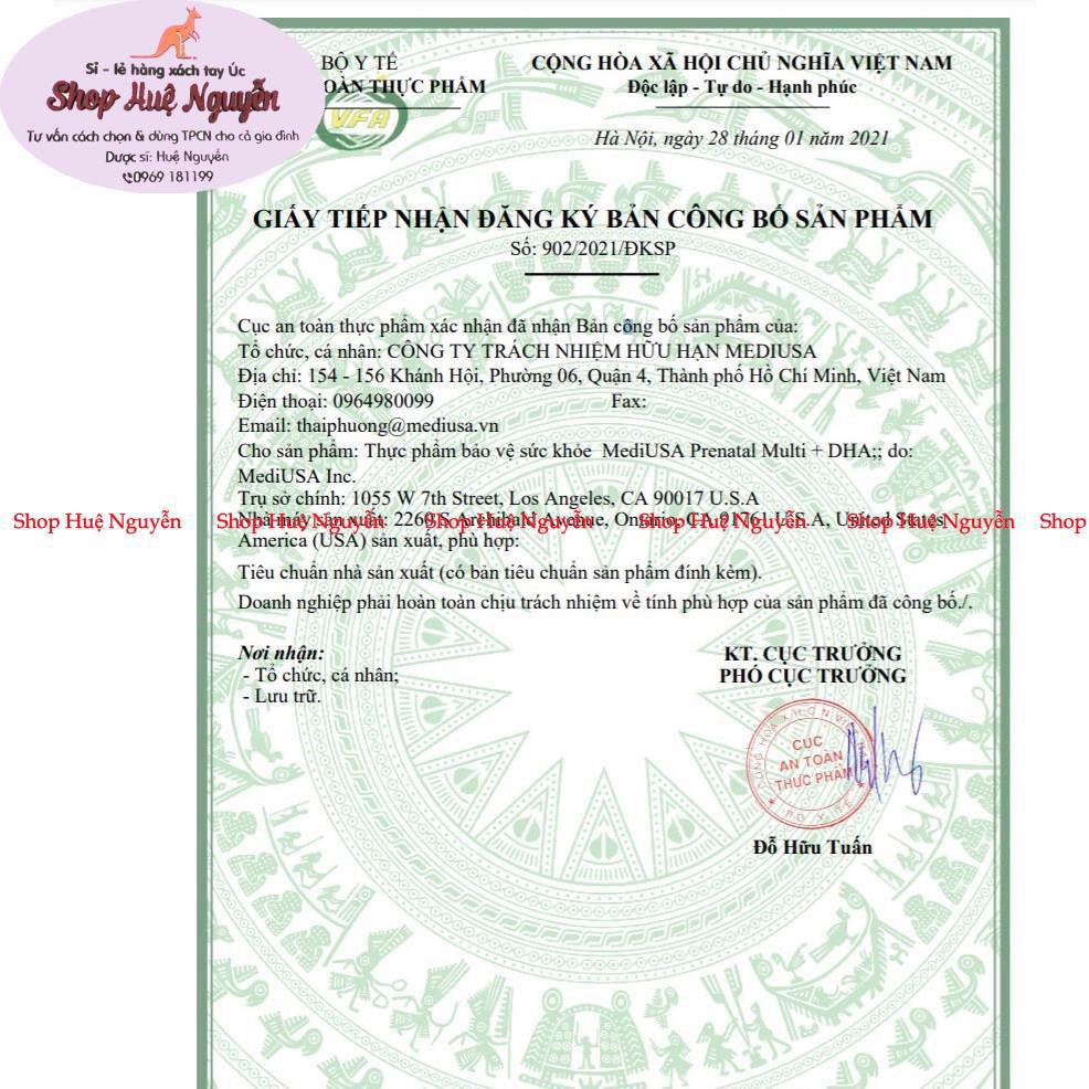 1. THÔNG TIN SẢN PHẨM: Tên sản phẩm: Nature Made Prenatal Multi DHA - Mỹ Quy cách đóng gói : 150 viên/lọ (200mg) Hãng sản xuất: Nature Made Xuất xứ : Mỹ Hạn sử dụng: In trên vỏ hộp Bảo quản viên uống nơi khô ráo, thoáng mát tránh ánh nắng mặt trời trực tiếp. ------------------------------------ 2. Thành Phần Nature Made là thương hiệu số 1 được chuyên gia khuyên dùng. Sản phẩm Viên uống Multi - DHA Penatal 150 viên được điều chế từ tự nhiên, an toàn cho sức khỏe, không chứa chất tạo màu, hương vị, nấm men, tinh bột, ... Hàm lượng dưỡng chất được tính toán kỹ lưỡng, cung cấp đủ cho mẹ và bé trước và trong thai kỳ mà không lo tác dụng phụ. Sản phẩm được đánh giá cao và rất nhiều review tích cực từ những người đã sử dụng. Hàm lượng DHA khuyến nghị cho bà bầu là 200 - 300mg giúp bé phát triển thông minh, tăng khả năng tư duy, học hỏi và cho đôi mắt sáng khỏe. ngoài ra, các thành phần thiết yếu: + Acid folic(100% lượng cần của mỗi ngày cho các bà mẹ đang mang thai và cho con bú) rất cần cho sức khỏe và hệ miễn dịch của thai nhi. Ngoài ra, nó còn giúp giảm khả năng bị mắc các chứng bệnh về trí não hoặc dị tật bẩm sinh khi các bé chào đời. + Sắt, cần thiết cho mẹ bầu, làm giảm nguy cơ thiếu máu khi mang thai. + Zinc (kẽm) cần cho sự phát triển và miễn dịch của thai nhi. + Vitamin D, giúp tăng hấp thu canxi, hỗ trợ xương khớp. --------------------------------- 3. Công dụng của vitamin tổng hợp cho bà bầu Prenatal Multi DHA Bổ sung các vitamin, khoáng chất và DHA cho phụ nữ chuẩn bị có thai, trong suốt thai kỳ và cho con bú. Tăng cường dưỡng chất giúp mẹ và bé khỏe mạnh, phát triển tốt cả về thể chất lẫn trí não. Làm giảm nguy cơ dị tật bẩm sinh, sẩy thai, sinh non, bé ốm yếu sau khi sinh Tăng sức đề kháng và miễn dịch cho mẹ và bé. Bổ sung DHA hỗ trợ trí não, tăng cường khả năng học hỏi nhận thức của bé, giúp bé thông minh hơn. Bên cạnh đó Omega 3 còn giúp nuôi dưỡng võng mạc mắt, tăng thị lực cho bé yêu. ----------------------------- 4. Cách dùng vitamin tổng hợp cho bà bầu Prenatal Multi DHA Sử dụng theo liều lượng: Ngày uống 1 viên thuốc sau khi ăn sáng hoặc trưa Lưu ý: + Thông thường, ở tháng thứ 4 của thai kỳ mẹ bầu thường sẽ bị thiếu hụt trầm trọng Canxi. Vì vậy bạn có thể kết hợp bổ sung thêm chất này.
