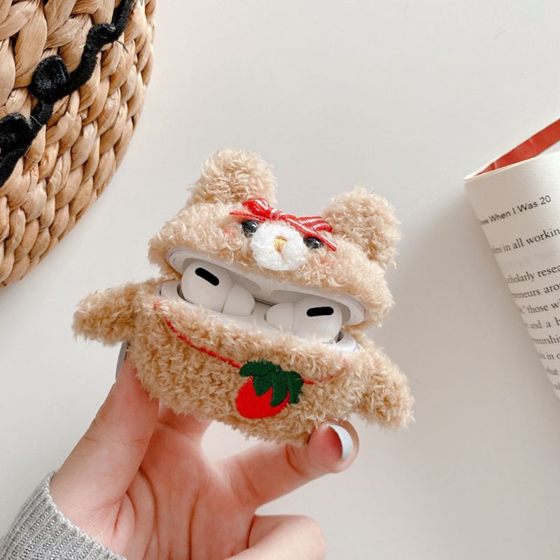 #Cute Strawberry Bear #Protective Cover #Plush #Case #Sleeve#Airpods Pro #Headset Description: 100% brand new and high quality Features: Designed for Airpods Pro wireless headphone box, not easy slide out and keep it always in new look. Soft and comfortable plush well made, cute strawberry bear pattern and size fits for Airpods Pro perfectly. Available for charging the Airpods Pro from the bottom without remove the case. Keep your Airpods Pro new and clean against scratches, bumps, drops and shock. 360°full protection, no need to worry about falling or put in the bag was scratched. Compact size and light weight, easy to carry and take. Protective Case only, other accessories demo in the picture is not included!
