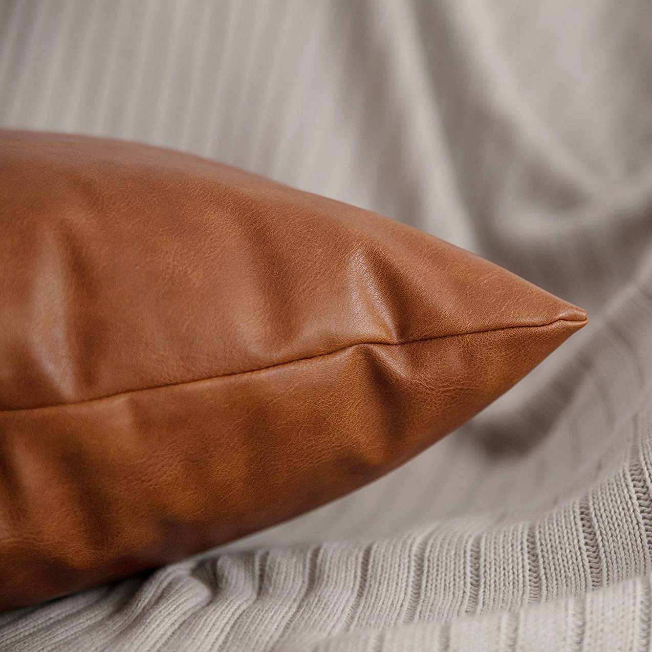 Modern design pillowcase. Just fill these with pillow inserts to update the look of your room! Made of pu leather. Classic invisible zip closure at bottom. The seams are double stitched and stitched. Easy to take care of. These covers can be wiped clean with a damp cloth without having to be removed and filled often. Please note-pillows are not included. Color: brown Material: PU Size: 50 * 30cm Package Contents:1* pillowcaseOnly the above package content, other products are not included. Note: Light shooting and different displays may cause the color of the item in the picture a little different from the real thing. The measurement allowed error is +/- 1-3cm.