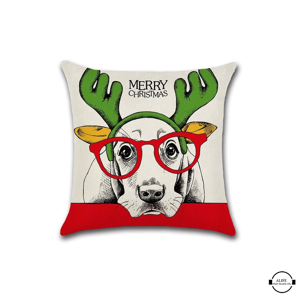 ************************************************************************************************************************* Merry Christmas Animal Theme Throw Pillow Cover Linen Pillow Case 45cmx45cm