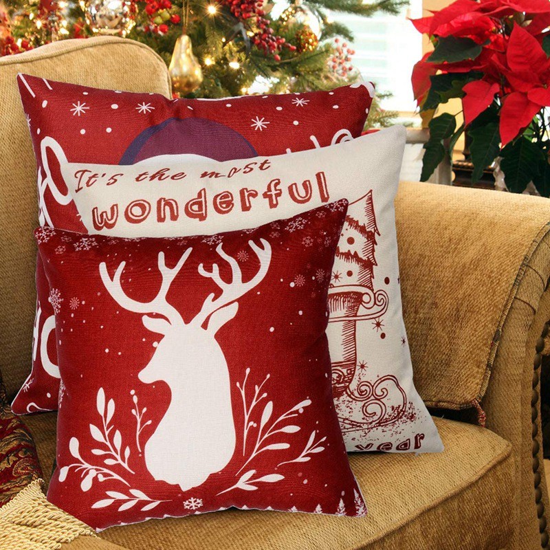High-Quality Material: Christmas pillow cover is made from high quality linen which is natural eco-friendly. It is Antibacterial, Breathable, Comfortable and Durable. Standard Size: Christmas cushions size in 18 x 18 inches / 45 x 45 cm. Do not bleach and perfect to use 20inch x20inch insert for fuller looking. Heat-Resistant: Machine washable, Withstands high heat 140°F (60°C). PACKAGE includes 4 different patterns, Christmas Bell, Christmas Tree, David's Deer, Santa Claus. Widely Use: Throw pillowcase could increase your imagination for creating various patterns. Could decoration your room, home, car, and parties, also could be the gifts for the kids, families, and friends.