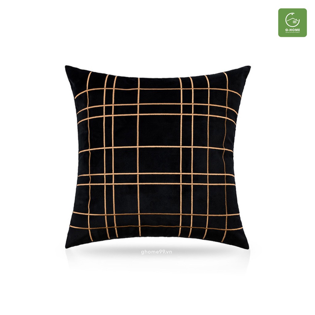 Giới thiệu Vỏ gối vuông Ghome tựa sofa, gối ôm, gối tựa lưng chất nhung cao cấp họa tiết kẻ ô 45x45cm VG15