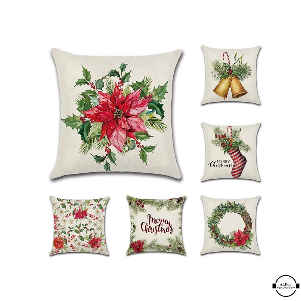 ************************************************************************************************************************* Christmas Printing Throw Pillow Case Soft Linen Bell Red Sock Wreath Pillow Cover 45x45cm