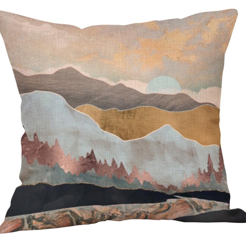 Vỏ Gối Vuông Họa Tiết Phong Cảnh Độc Đáo Trang Trí Nội Thất