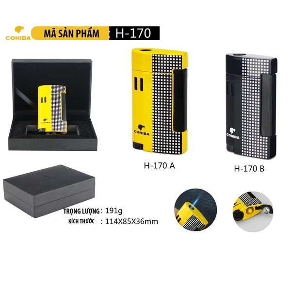 Bộ sản phẩm bao gồm: 1 bật lửa, 1 bộ hộp