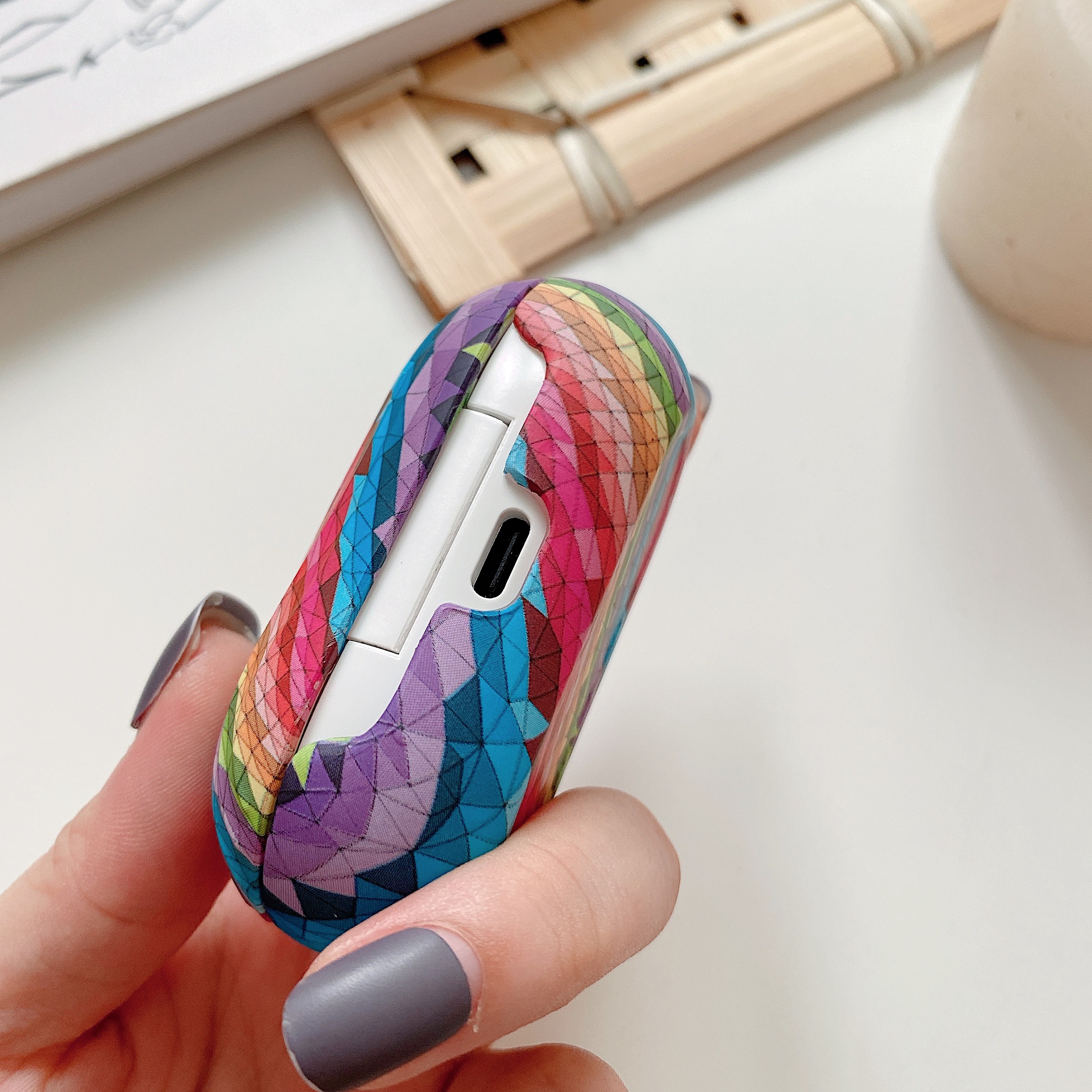 - Thiết kế khe sạc, phía dưới có khe sạc đặt trước, thuận tiện cho việc sạc tai nghe, thời trang và phóng khoáng - Làm bằng PC bền chống va đập