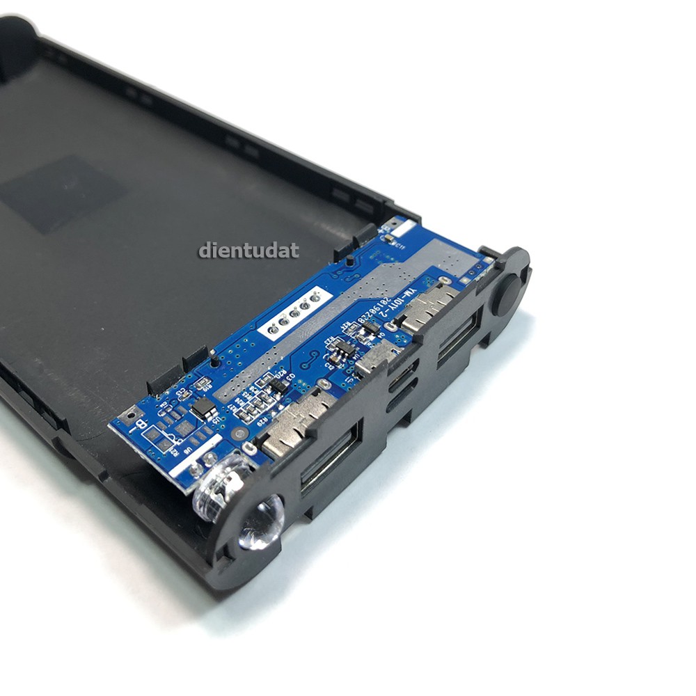 Vỏ Sạc Dự Phòng 7 Cell Cổng Sạc Lightning  - Hiển Thị Led được sử dụng cho 7 cell pin 18650 mắc song song. Mạch được thiết kế với 2 ngõ sạc pin cổng micro USB và cổng Lightning.
