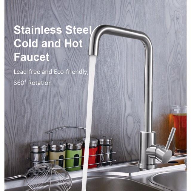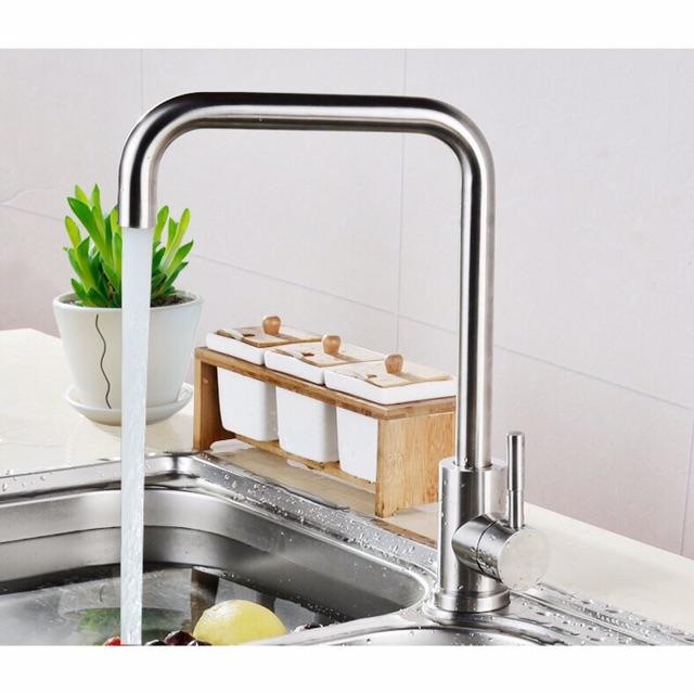 Vòi chậu rửa bát nóng, lạnh Inox sus 304 cần vuông cắm chậu+2 Dây cấp chân đồng