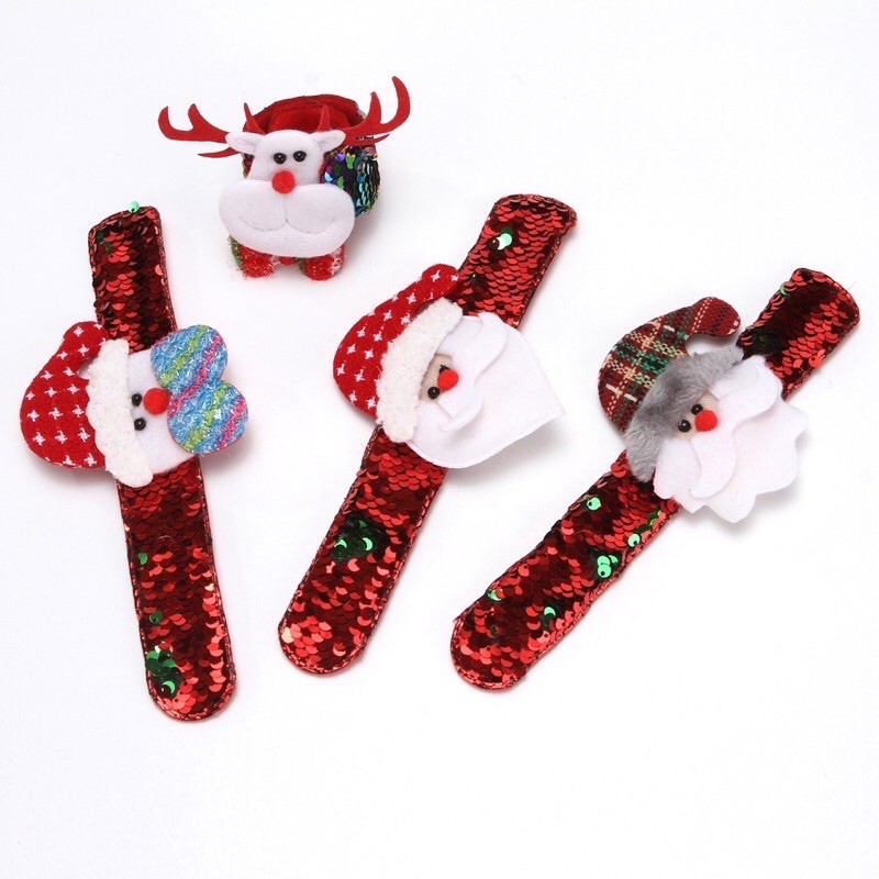 Vòng tay Ông Già Noel Giáng Sinh Kích thước: 21cm x 3cm Chất liệu bọc vải nỉ, phủ hạt squin thêu Chỉ cần đập nhẹ là vòng tự quấn vào tay rất dễ dàng. kích thước phù hợp với cả bé và người lớn cũng đeo vừa được nha. Hình phụ kiện mặt dây bằng vải nhung, nỉ, kim tuyến. có gắn đèn led phát sáng. có thể tắt mở tuỳ chỉnh Đây là món đồ chơi , vật trang trí, phụ kiện hot và vô cùng dễ thương dành tặng cho bé và bố mẹ, các bạn diện tết, noel, lễ tiệc. đem lại điểm nhấn và cực kỳ đáng yêu. nhanh tay sở hữu và hưởng ưu đãi ạ