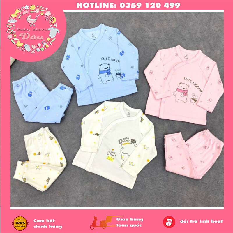 Giới thiệu Xả hàng set sơ sinh dài tay Moon pettit cài lệch họa tiết - chất cotton organic mềm như bún - size từ sơ sinh - 6 tháng