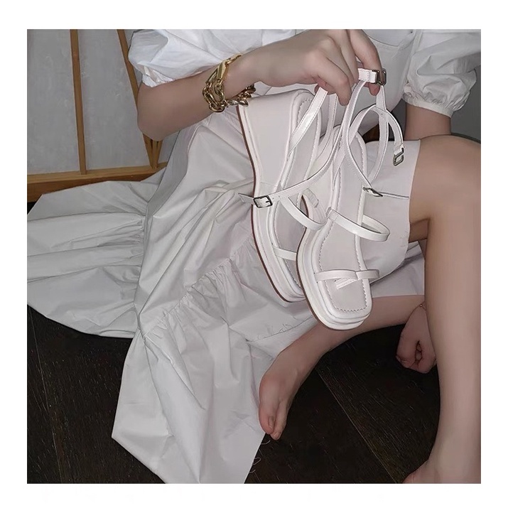 Giới thiệu Xăng đan dây đế xuồng có 2 màu đen trắng. Chất da mềm đi êm chân