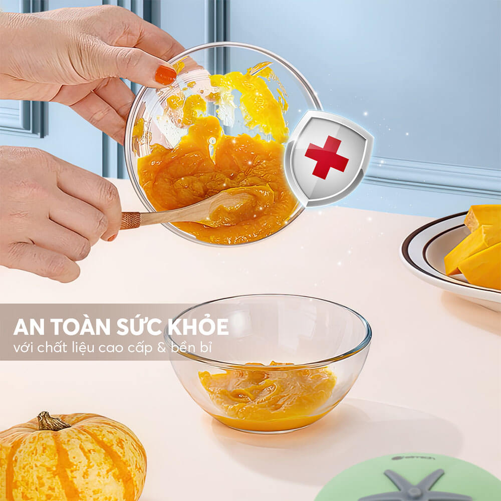 1. Dung cụ có lưỡi dao bằng inox, cốc đựng bằng nhựa không BPA, tuyệt đối an toàn sức khỏe