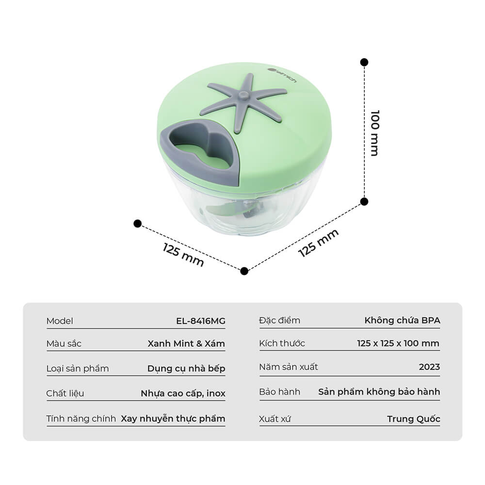 Dụng cụ xay rau củ quả gia vị Elmich EL8416, Hàng chính hãng, cối nhựa trong suốt, lưỡi dao bằng inox - JoyMall