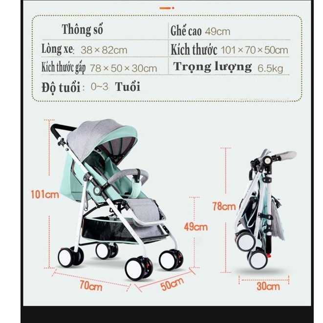 Giới thiệu Xe Đẩy Cho Bé Gấp Gọn 2 Chiều 3 Tư Thế, Xe Đẩy Em Bé Gấp Gọn Chính Hãng