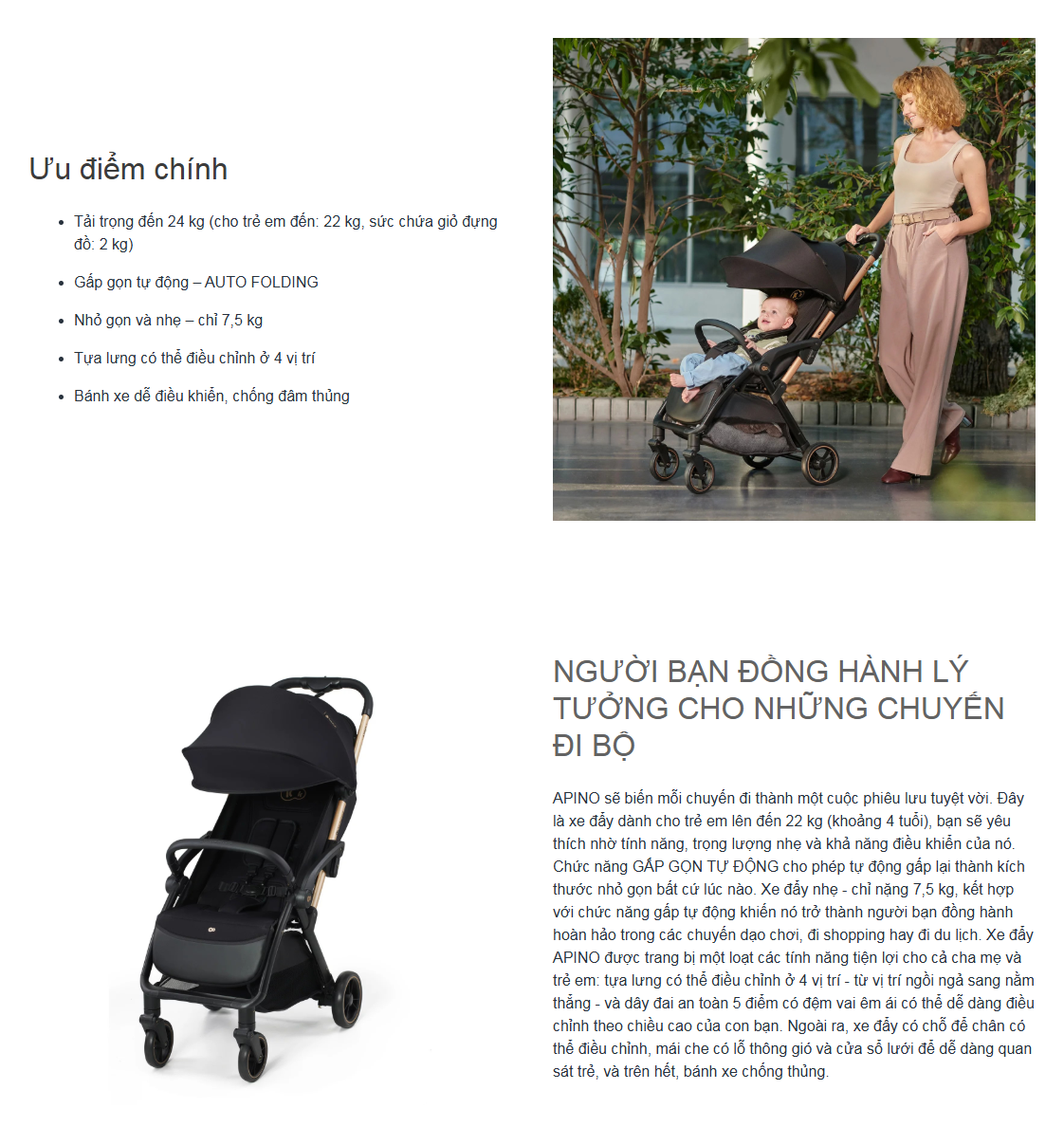 • Xe đẩy nhỏ gọn dành cho bé từ sơ sinh đến 22kg