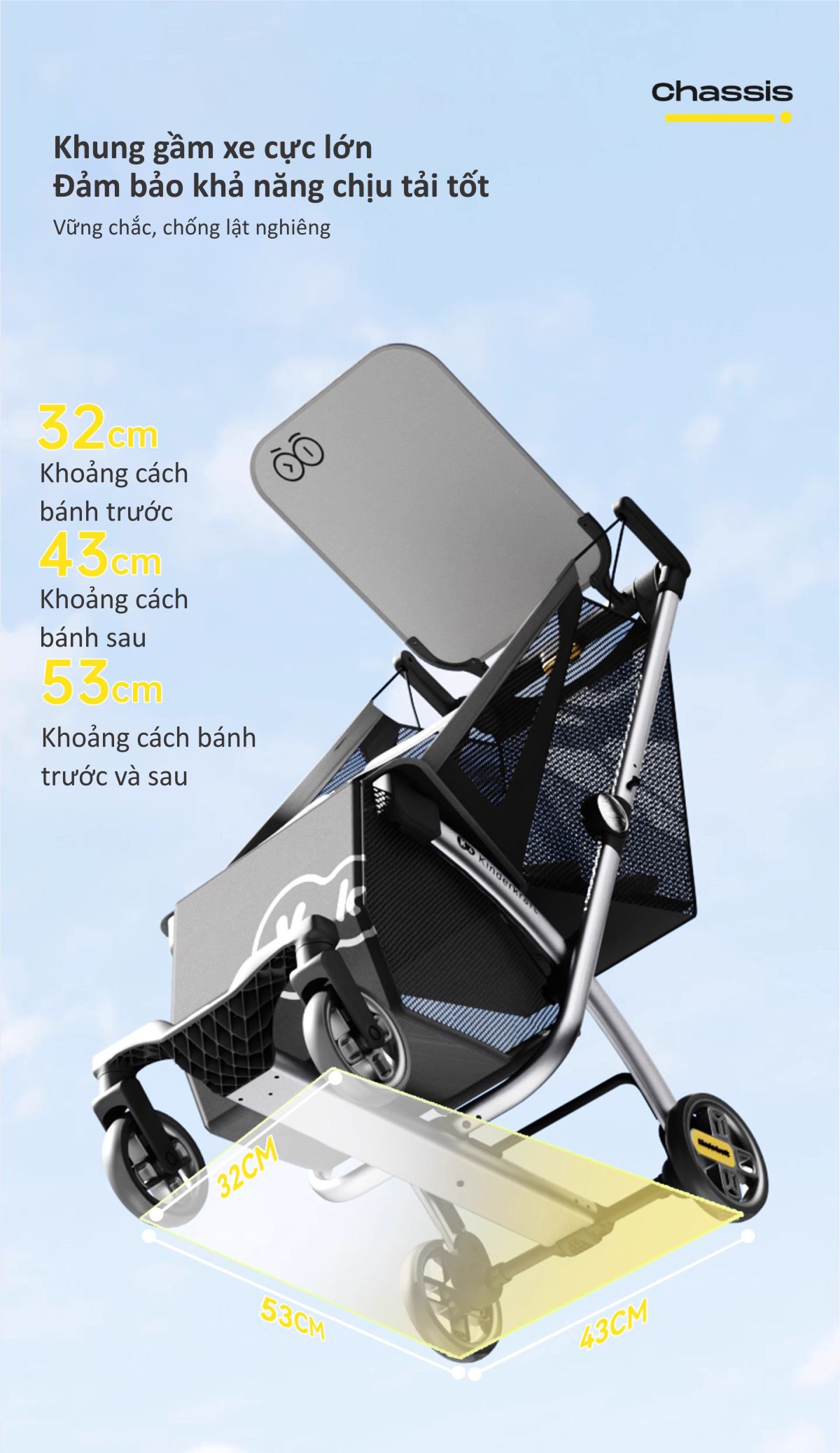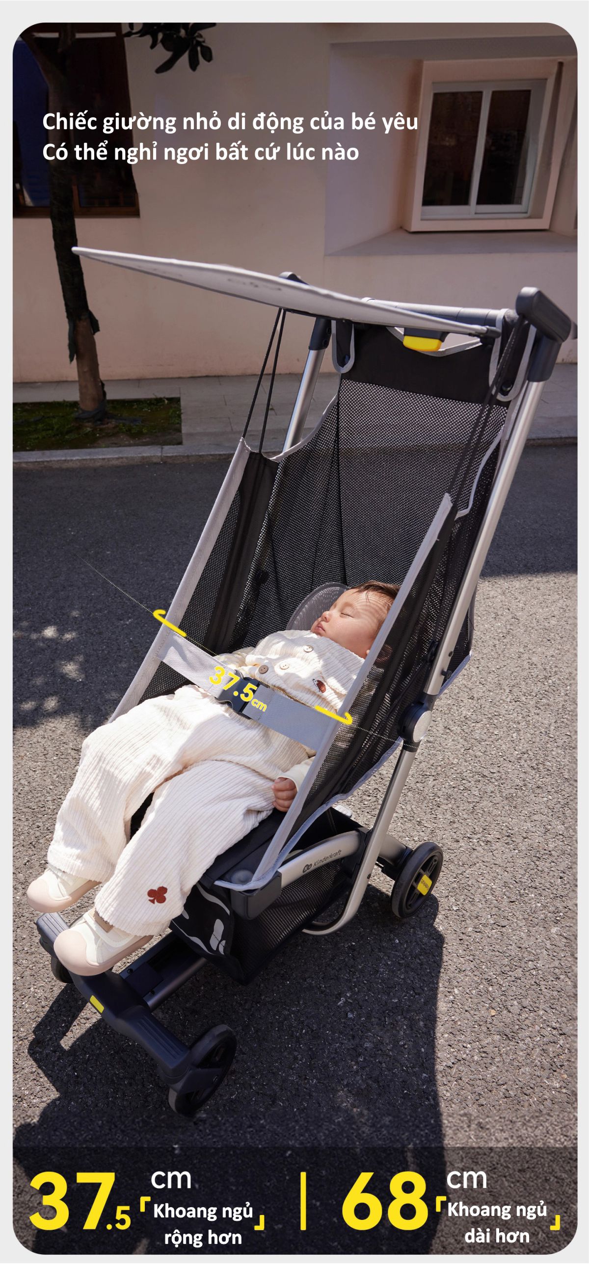 • Trọng lượng nhẹ: Chỉ 5.8kg, Ba mẹ dễ dàng 1 tay bế bé, 1 tay xách xe tiện lợi.
