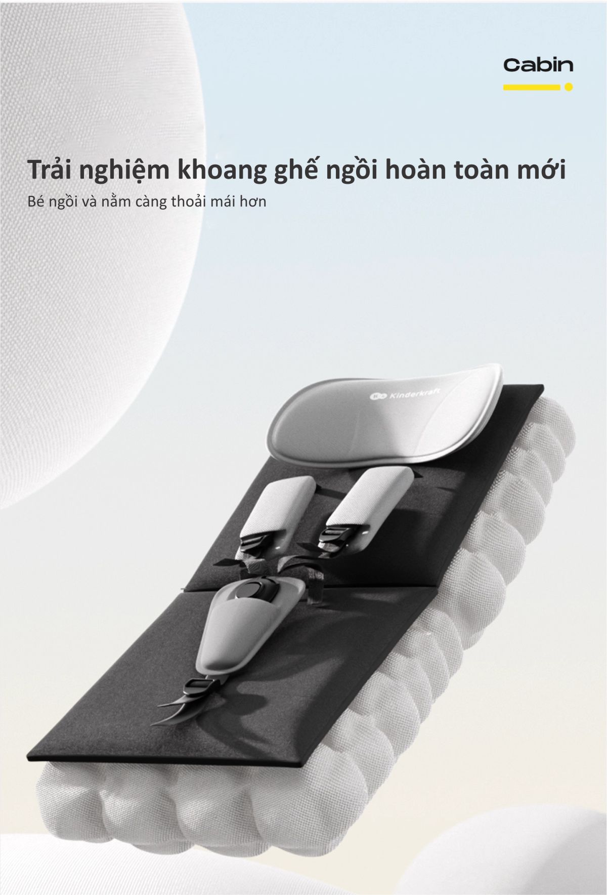 • Khoang ngồi được nâng cấp rộng rãi hơn, đệm ngồi với hệ thống đỡ lưng 3 lớp, bao gồm lớp đỡ cứng bên trong để bảo vệ cột sống của bé.