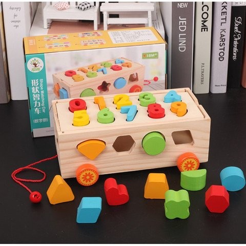 Tên sản phẩm: Xe kéo thả hình và số Kích thước sản phẩm: 24cm * 12cm * 8cm