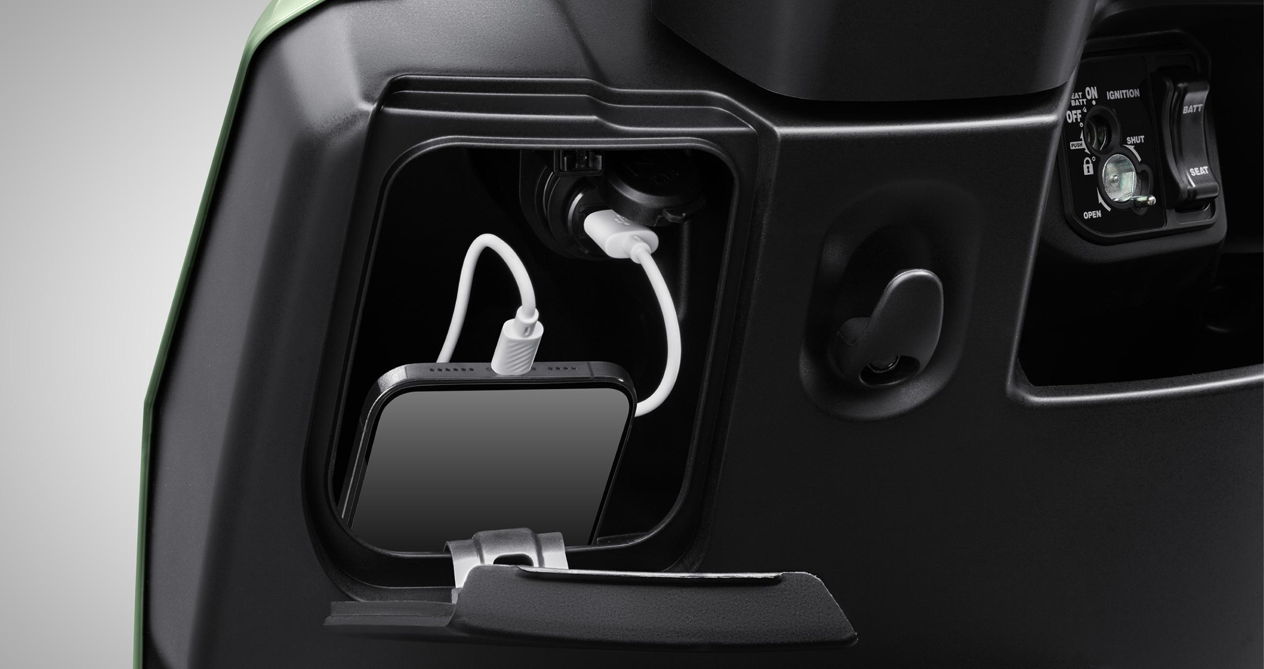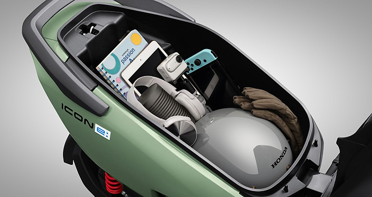 ICON e: sở hữu 2 hộc đựng đồ phía trước, đặc biệt hộc đựng đồ bên trái được trang bị cổng sạc USB loại A, mang đến sự thuận tiện cho các bạn trẻ thích di chuyển.
