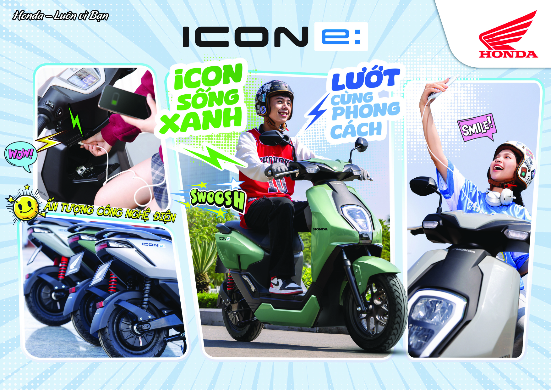 ICON e: với thiết kế trẻ trung và mang tính biểu tượng, có thể khiến khách hàng dễ dàng nhận ra và nổi bật giữa đám đông. Kích thước xe nhỏ gọn, phù hợp với vóc dáng của người Việt, đặc biệt với các bạn học sinh, cho phép di chuyển linh hoạt trên đường phố.