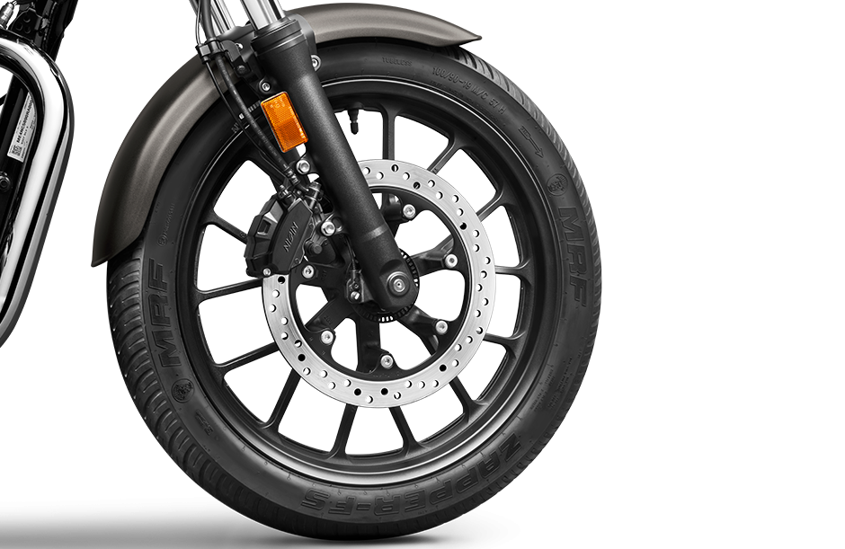 CB350 được trang bị hệ thống ABS 2 kênh trên cả bánh trước và bánh sau, phanh đĩa trước đường kính 310mm kết hợp cùng phanh đĩa sau đường kính 240mm không những giúp kiểm soát hiệu quả tốc độ của xe, ngăn ngừa hiện tượng khóa bánh trong các tình huống phanh khẩn cấp mà còn đem lại hình ảnh thể thao mạnh mẽ.