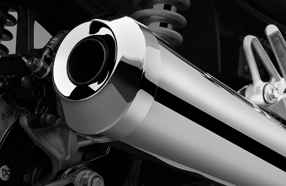 Hệ thống ống xả của CB350 được mạ chrome sáng bóng tăng thêm vẻ cổ điển cho xe. Thiết kế miệng thoát khí đường kính lớn tạo ra tiếng nổ giòn, trầm ấm đấy phấn khích