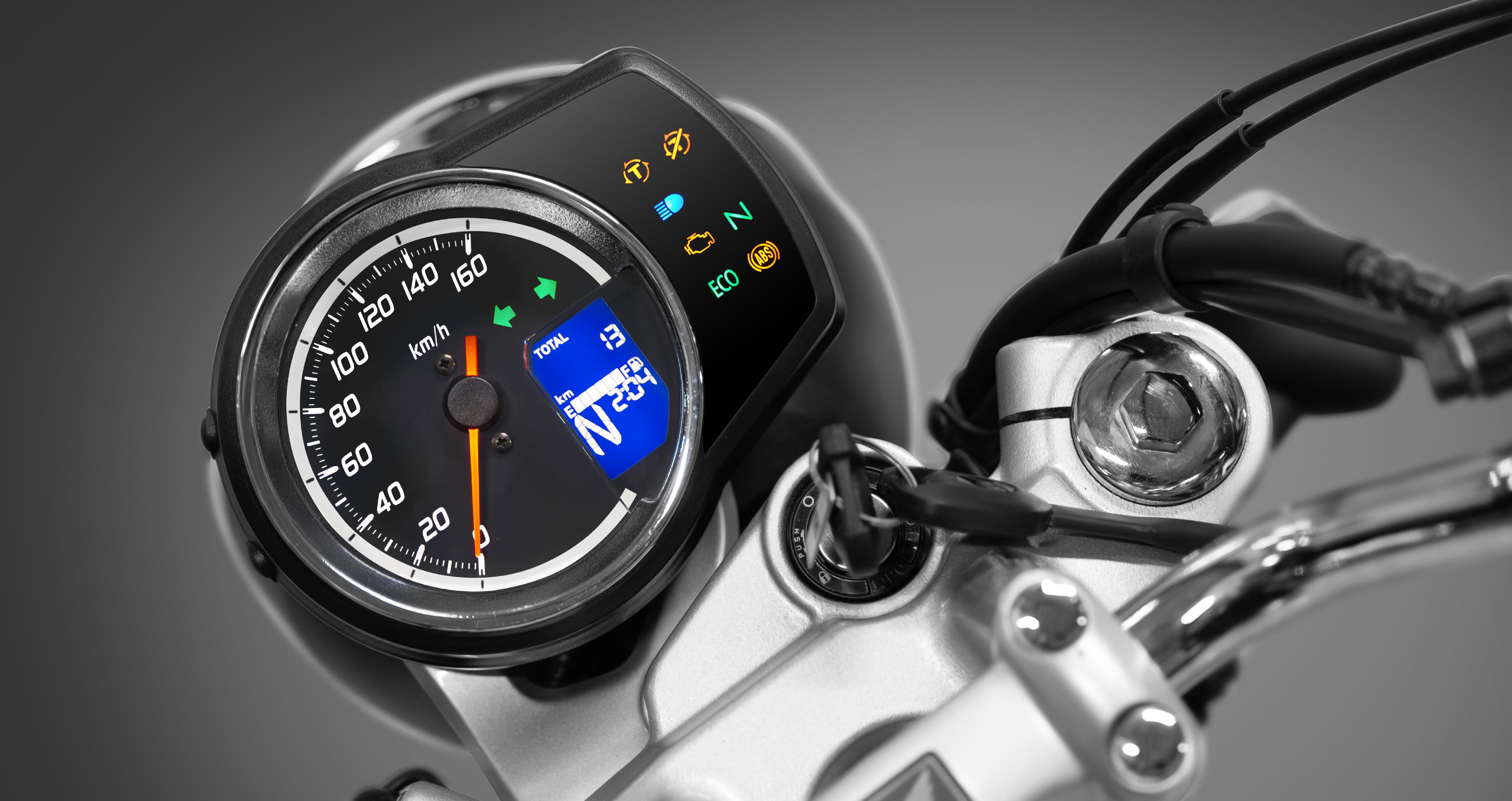 Cụm đồng hồ CB350 kết hợp cơ khí và kỹ thuật số mang đến hình ảnh vừa cổ điển vừa hiện đại. Đồng hồ cơ khí báo tốc độ, đồng hồ LCD hiển thị đa thông tin bao gồm báo lượng xăng và giờ, vị trí cấp số, mức tiêu thụ nhiên liệu trung bình, mức tiêu thụ nhiên liệu theo thời gian thực, điện áp ắc quy và quãng đường đi được với lượng xăng còn lại trong bình.