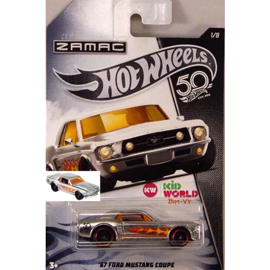 Giới thiệu Xe mô hình Hot Wheels 50th Anniversary Zamac Flames Series 2018 '67 Ford Mustang Coupe FRN24.
