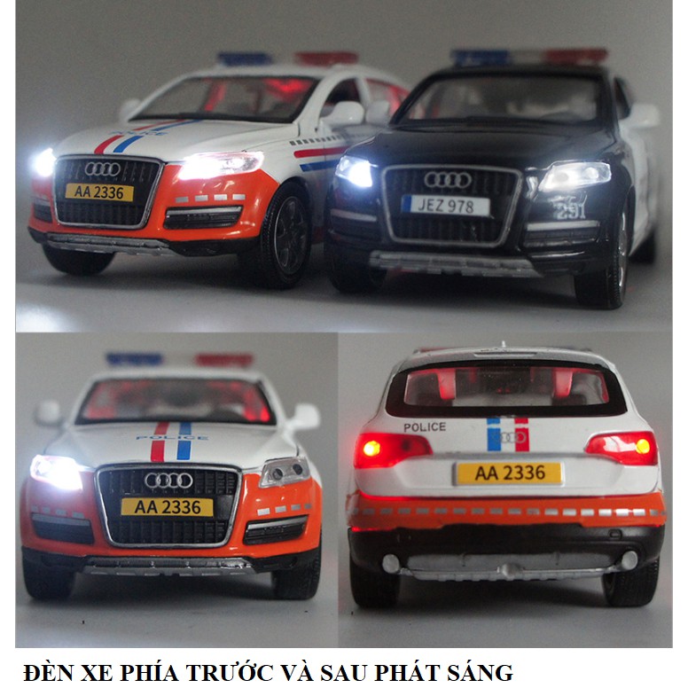 Xe ô tô cảnh sát Audi Q7 bằng sắt mô hình tỉ lệ 1:32 có âm thanh và đèn - xe đồ chơi trẻ em chạy bằng cót và mở các cửa