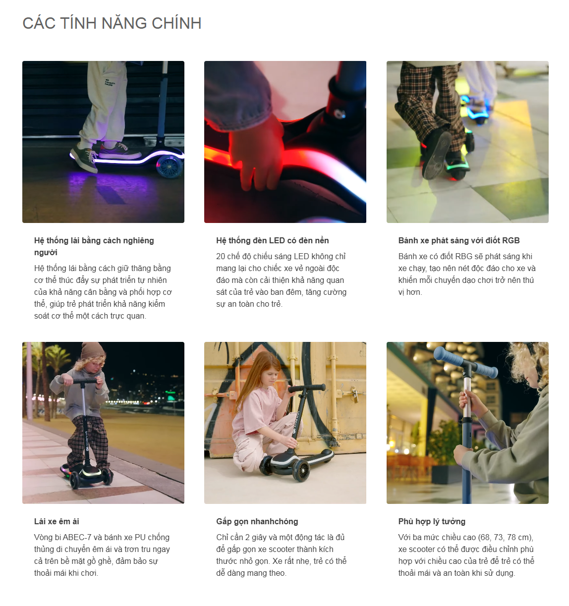 • Thiết kế 3 bánh ổn định cùng cơ chế lái bằng cách nghiêng người, giúp trẻ từ 2 tuổi dễ dàng làm quen và phát triển khả năng giữ thăng bằng