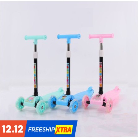 🍀 Xe Trượt Scooter cho bé xe trượt scooter trẻ em 3 bánh phát sáng trông rất đáng yêu cho bé. 👉 Không gì vui hơn khi ba mẹ thấy con mình vui chơi vận động khỏe mạnh, an toàn. Bạn mong muốn con mình phát triển toàn diện, muốn con tham gia các trò chơi bổ ích, lành mạnh? Hãy sở hữu cho bé yêu của mình một chiếc Scooter cho bé ba bánh phát sáng. 👉 Là dòng sản phẩm được tất cả các bé đều yêu thích với màu sắc nổi bật, bền màu. Khung xe được làm bằng nhựa PVC cao cấp siêu bền kết hợp với 3 bánh an toàn sẽ giúp bé dễ dàng trượt hơn phát triển được sự khéo léo, nhanh nhạy cũng như sức khỏe của bé. 👉 Thiết kế chắc chắn có khả năng chịu lực cao 👉 Có thể gấp gọn để mang đi chơi du lịch hoặc về quê với ông bà bé vẫn có chiếc xe thân yêu đồng hành 👉 An toàn khi sử dụng