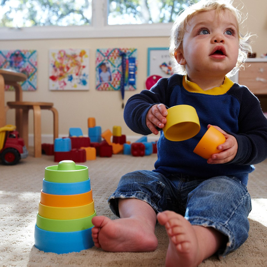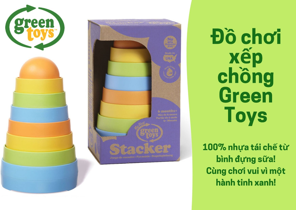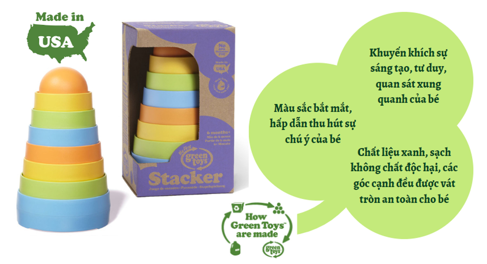 Bộ đồ chơi xếp chồng Green Toys là loại đồ chơi cổ điển nhưng được làm an toàn hơn và hấp dẫn hơn. Tám khối màu sắc hấp dẫn xếp chồng lên nhau dễ dàng từ lớn đến nhỏ, trong khi đó cũng cho phép kỹ sư xây dựng nhí tưởng tượng, sáng tạo xếp theo chồng lên theo bất kỳ thứ tự nào. Các bé có thể phát triển sự phối hợp tay-mắt và nhận biết màu sắc trong khi chơi. Đặc biệt quan trọng, đồ chơi xếp chồng Green Toys rất an toàn.