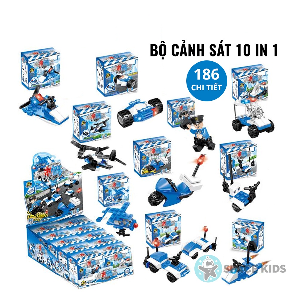 Giới thiệu Đồ chơi Lego city 10 in 1 cho bé lắp ráp mô hình xe cảnh sát, xe cứu hỏa, xe công trường, quân đội