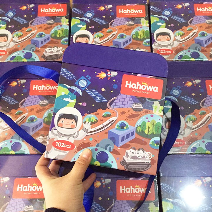 * THÔNG TIN CHI TIẾT SẢN PHẨM ĐỒ CHƠI XẾP HÌNH HAHOWA : - Hãng sản xuất: hahowa - Kích thước: Hình ghép xong có kích thước 597x376 cm. - Trọng lượng cả hộp : 600g - Chất liệu: Bìa ép cứng 4 lớp chất lượng cao - ĐỒ CHƠI XẾP HÌNH cho bé 3 tuổi trở lên - Số miếng ghép: 102-108 miếng - Kích thước miếng ghép: 9x7cm - Kích thước vỏ hộp: 17.5 x 6 x 19.5cm - 3 chủ đề: + Thế giới khủng long + Bé thám hiểm đại dương + Vũ trụ ĐỒ CHƠI CHUẨN HÃNG HAHOWA