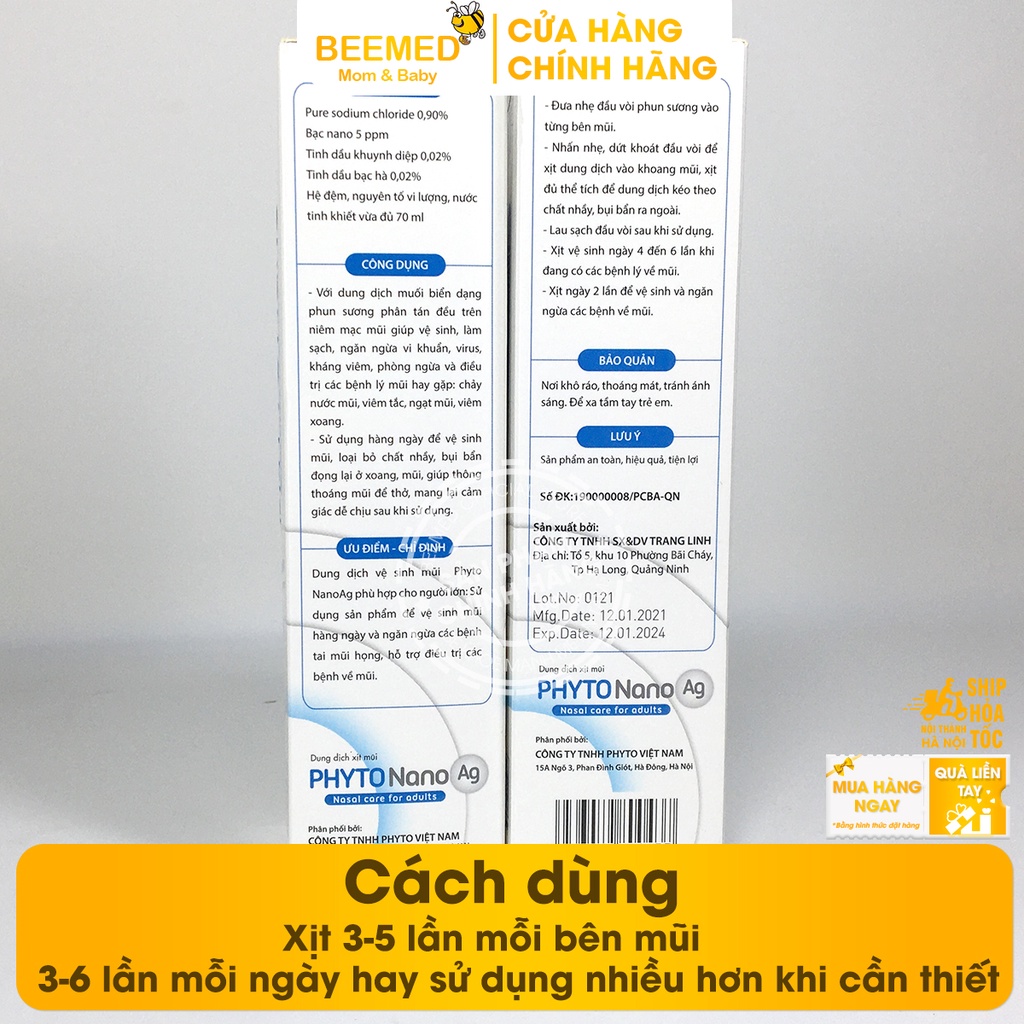 Giới thiệu Xịt mũi cho trẻ em và người lớn có khuynh diệp Phytonano - Nước muối biển rửa mũi có Nano bạc vệ sinh mũi tốt hơn