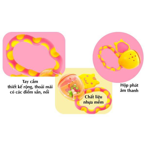 Các hạt xúc xắc bên trong khoang nhựa tạo ra âm thanh vui tai khi bé cầm, lắc, tăng sự kích thích cho bé.