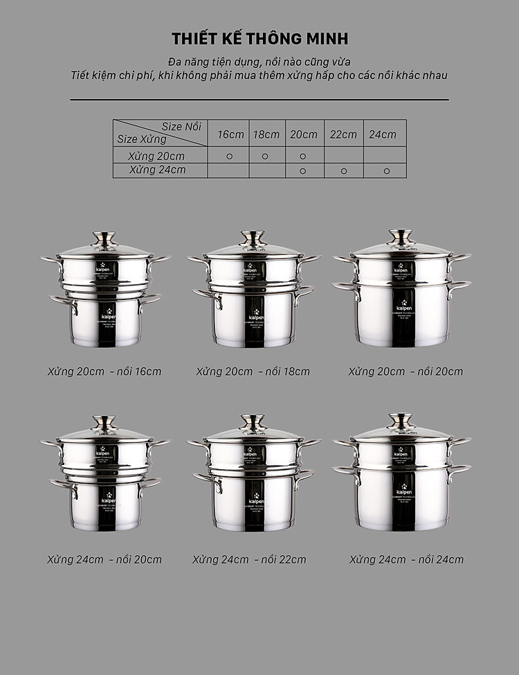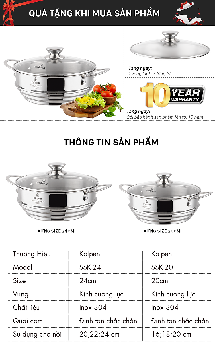 Những ưu điểm chính của bộ xửng hấp Inox 304 cao cấp của Kalpen: