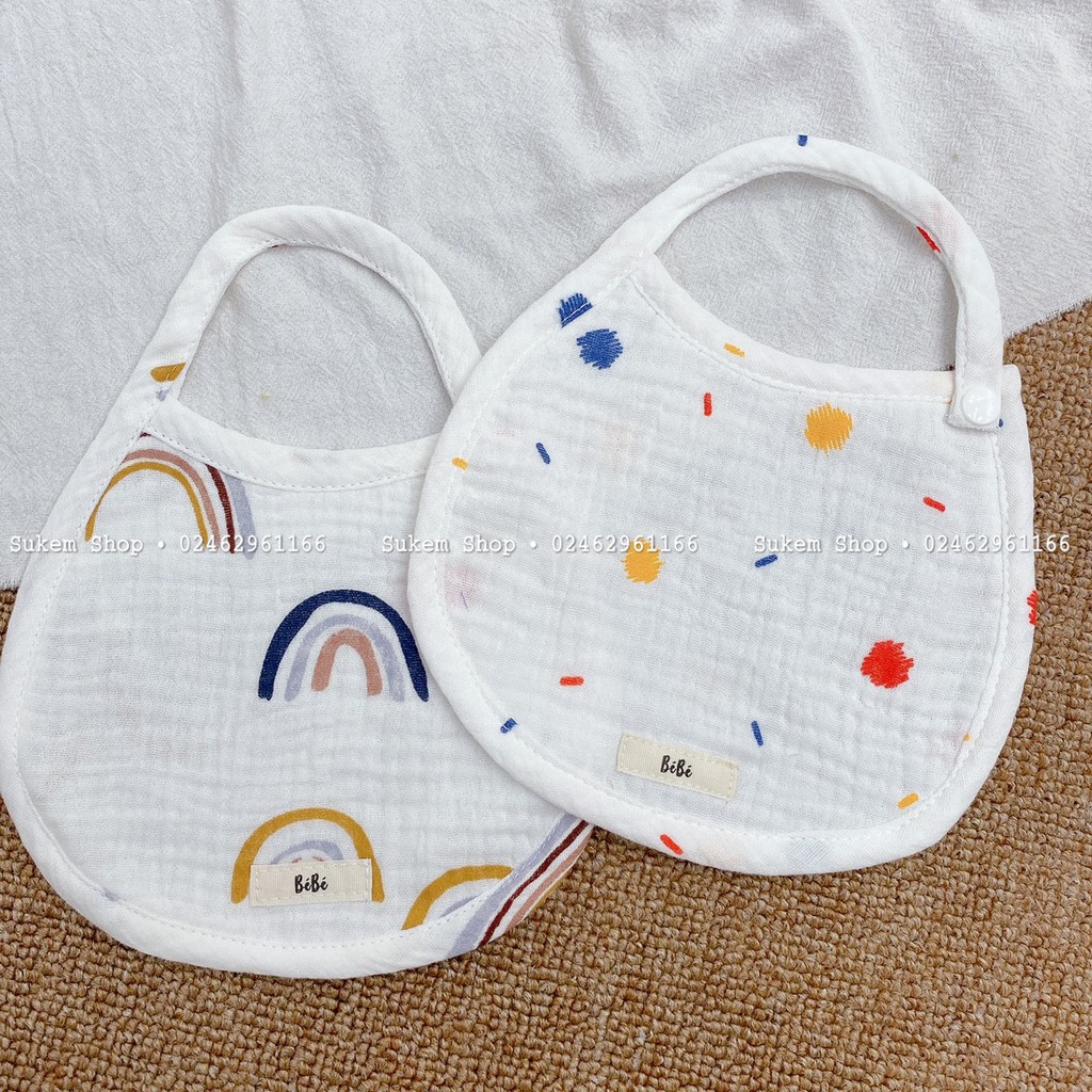 Yếm Cho Bé/ Set 2 Yếm Xô Tròn Sơ Sinh BéBé Mềm Mai Thấm Hút Tổt, Khuy Bấm