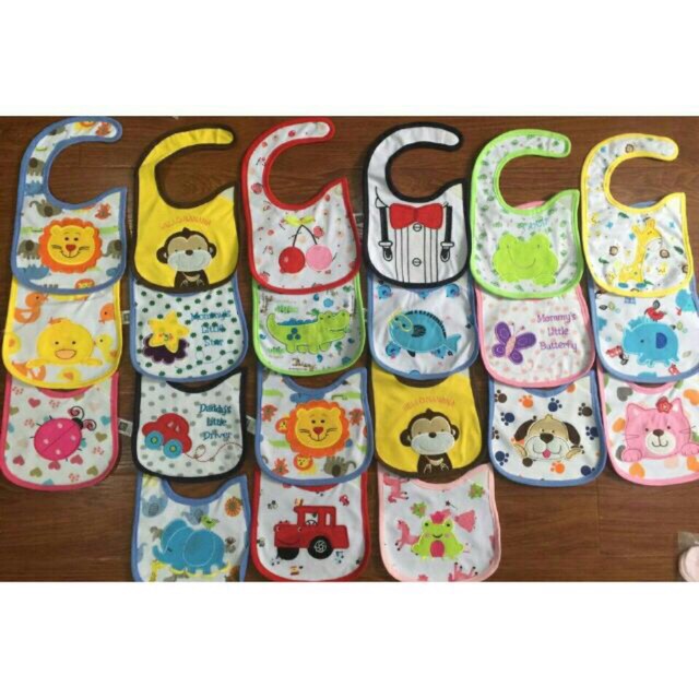 Chất liệu cotton 2 mặt ở giữa có lớp nilong dẻo chống thấm , mầu sắc hình ảnh thêu sắc nét, đáng yêu.