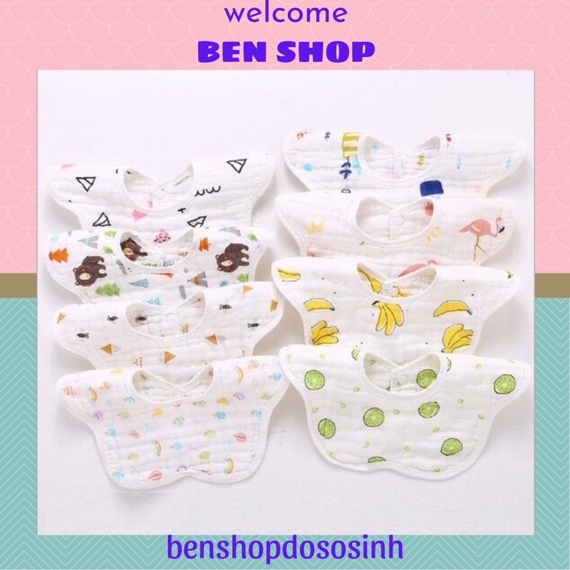 Yếm tròn xoay chất liệu vải xô 6 lớp dày dặn siêu thấm hút Khách có thể inbox chọn mẫu cụ thể.